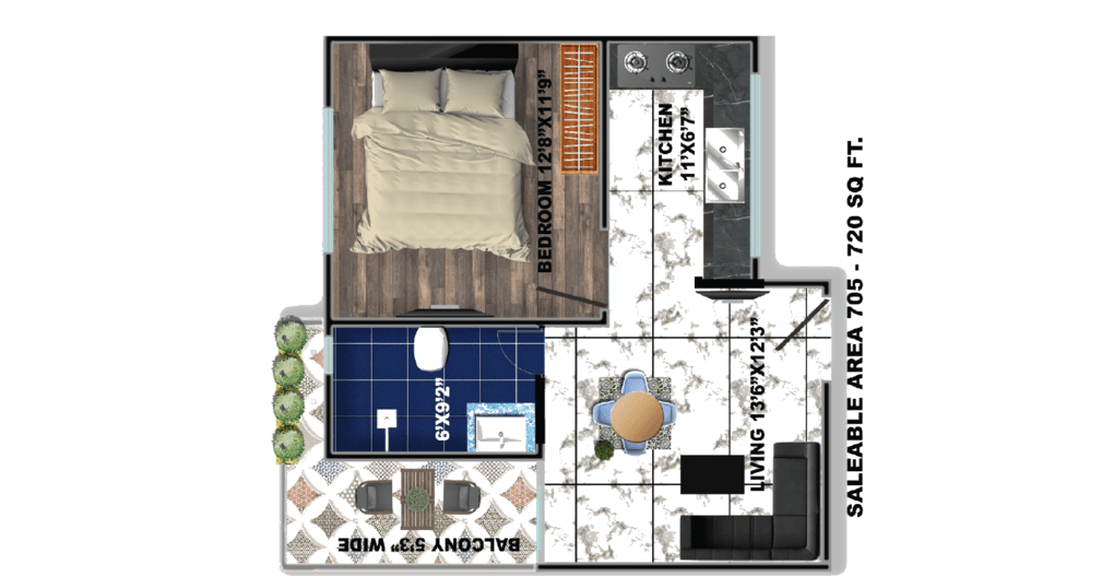 - 1 BHK Units (Approx. 645 – 720 sq. ft.)