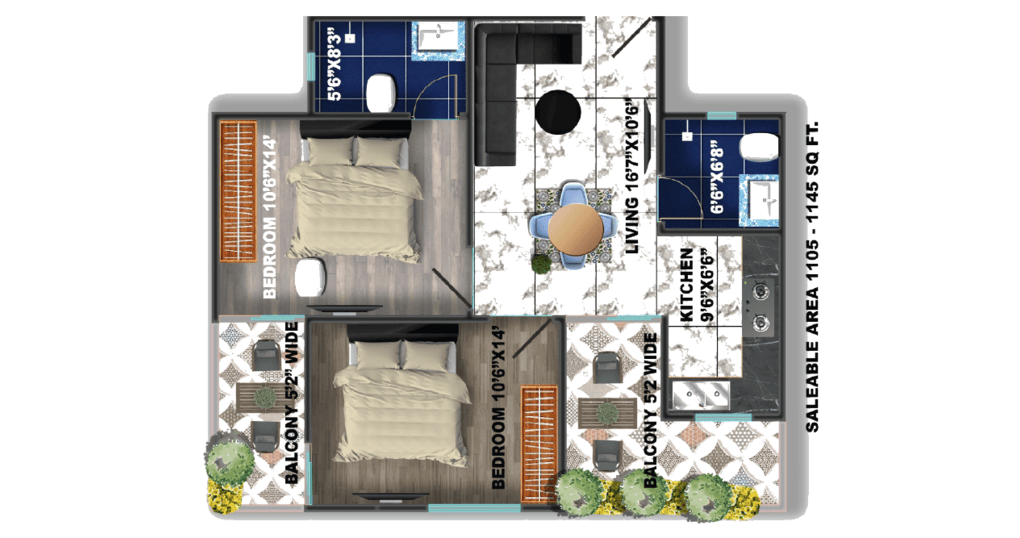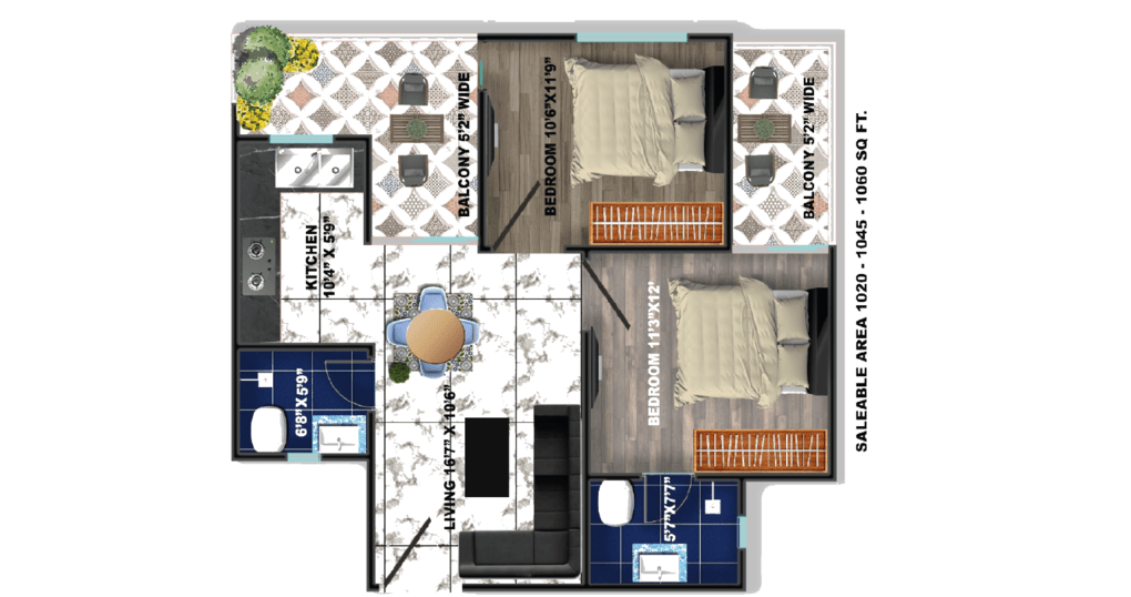 - 2 BHK Units (Approx. 1,020 – 1,145 sq. ft.)